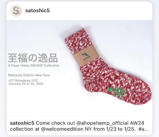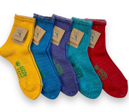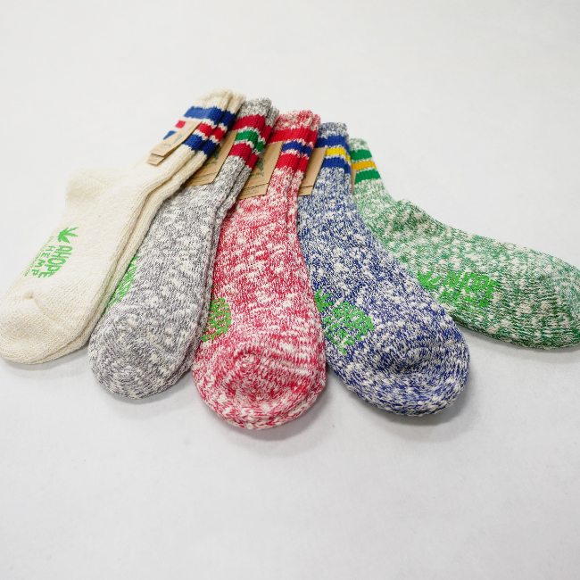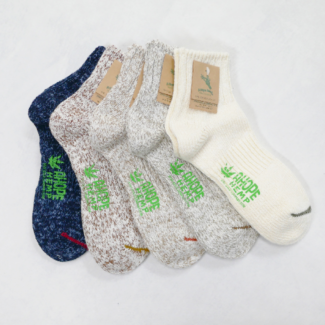 そして現在、SOCKS(靴下)もTシャツと並ぶA HOPE HEMPのもう一つの顔になっています。当時、偶然知り合った靴下作りの匠である職人さんと『日本の匠の技術でHemp素材の最高の靴下をお客様に提供しよう!!』と言う思いから始めた事がきっかけになります。こちらもHEMP素材の特性を十分に活かした最高の履き心地を体感して頂ける商品となっております。Tシャツも靴下も毎日着て毎日洗濯する。まさにデイリーユースなアイテムです。だからこそ『ほんまもん』を皆様に体感して頂くとともに私達も『ほんまもん』を自負していければと考えています。