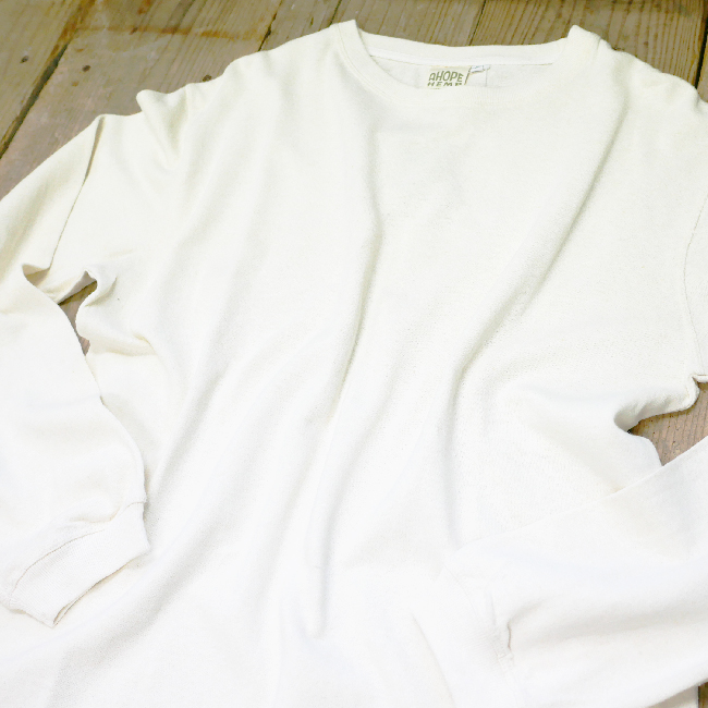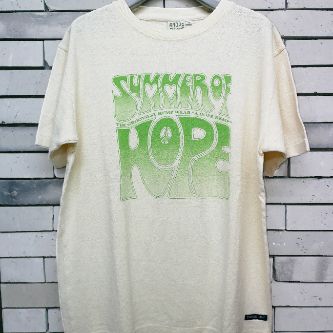 A HOPE HEMPは、Hemp本来の様々な有用性に目覚め、1998年よりスタートしたHemp Brandです。現在に至るまで様々な商品をHemp素材で制作してきました。元々、A HOPE HEMPの始まりは1枚のTシャツからでした。Brand発足当初から手がけている定番無地T-シャツは細かなアップデートを繰り返し、今尚、追求し続けています。「たかがTシャツ」「されどTシャツ」HEMP素材は特性上、洗う度にシャリ感が増し、非常に清涼感のある風合いになっていきます。定番中の定番である<Tシャツ>の素材・縫製等の研究を重ね、お客様に着て頂き、幸せになれるような着心地の良いTシャツ作りを目指しています。またA HOPE HEMPのTシャツをアートキャンバスと捉え、独自の染めや独自の世界観をもったアーティストさんとのコラボプリントなどを行いアートとして覧ていただく側面もあります。シンプルでありながら本質的な部分でもある素材の特性を活かした流行に捉われない商品をお客様にお届けしたいと考えています。